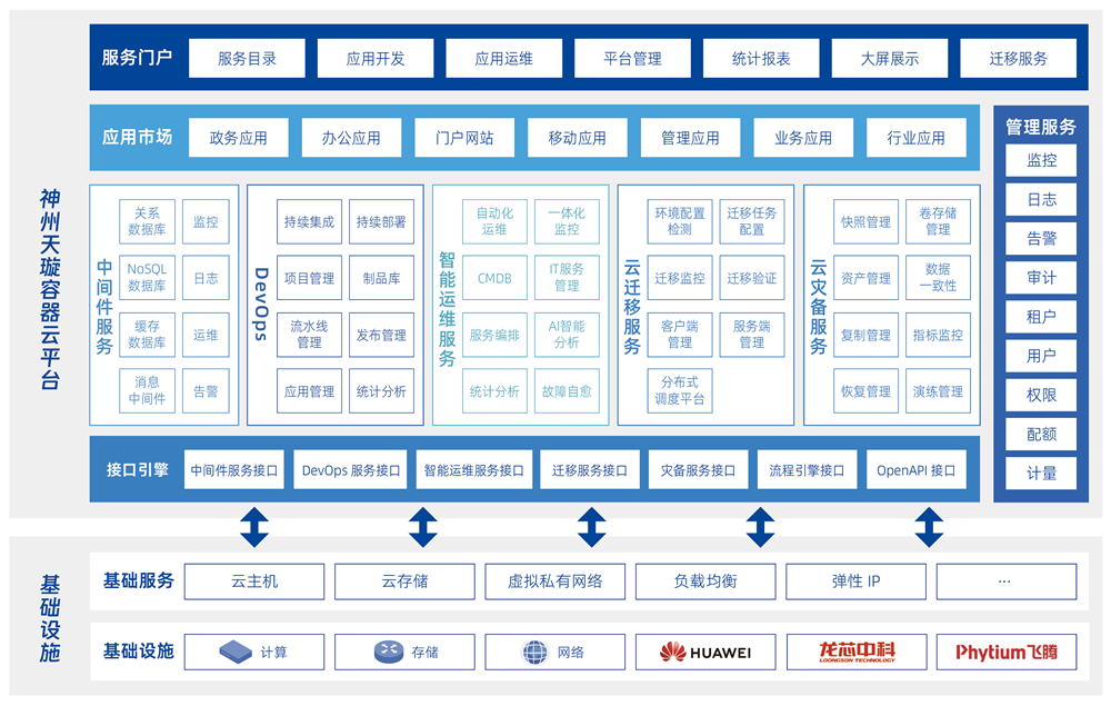 全栈自主可控的企业级容器云服务平台,,,,开箱即用的企业级多云管理、、、业务迁移上云、、、、云上开发测试、、、运维管理及容灾备份功能特性,,,模块化按需部署,,降低建设成本,,随业务需求灵活扩展。。。